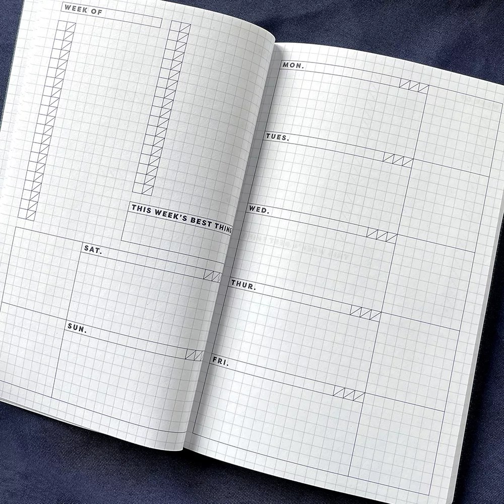 The past few years we’ve hand-printed calendars to mail out as year-end promos. They’ve snarkily cursed the previous year and Covid. For 2023, we decided to focus on the future instead. We produced 400 weekly planners based on the design Quentin has used for years. We then hand-pressed a 2023 calendar on the back cover with our 100-year-old Kelsey 5×8 Excelsior letterpress.